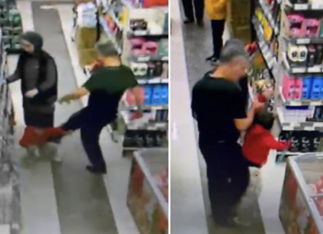 Kısa bir süre sonra alışveriş yapan C.E.’nin arkasından gelen oğlu, babasının sırtına vurdu. Buna öfkelenen C.E., oğluna tekme attı. Yere düşen oğlunu tekmelemeye devam eden C.E.’ye market çalışanları engel oldu. Baba C.E., oğlunu da alarak alışverişini tamamlayıp marketten ayrıldı.